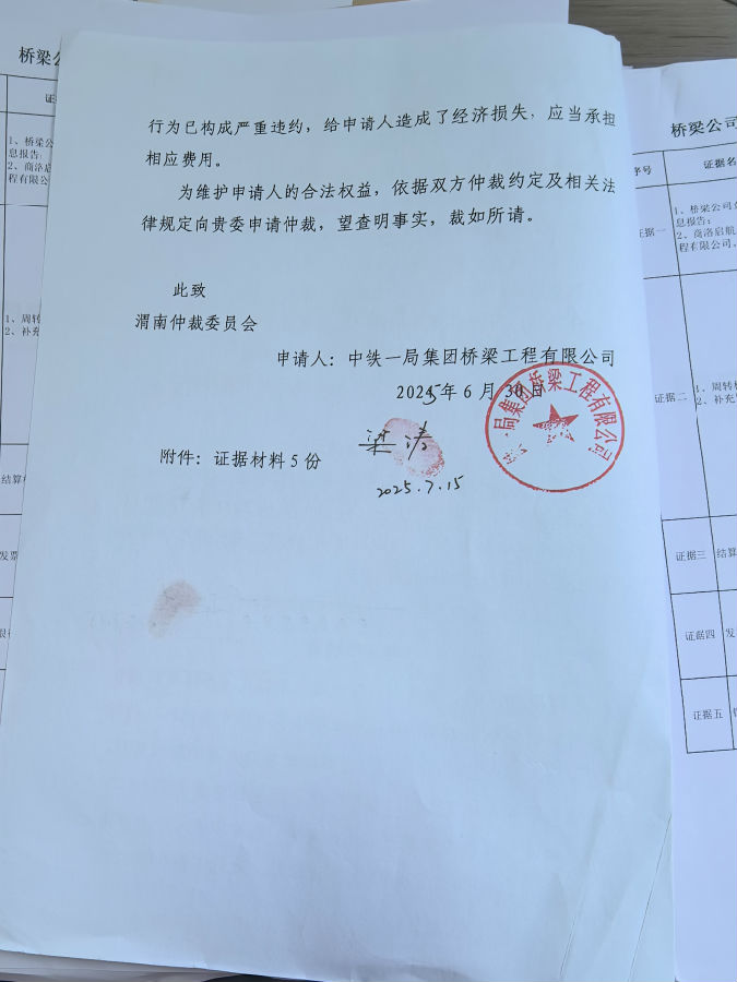 中鐵一局集團橋梁工程有限公司與商洛啟航遠達建筑工程有限公司建筑設(shè)備租賃合同糾紛案公告